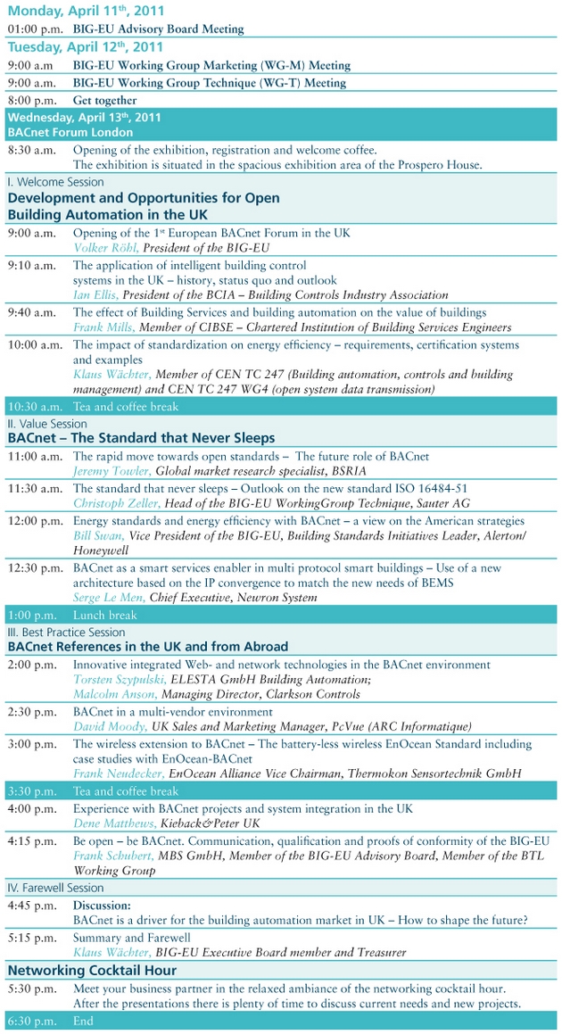 of the participants of the BACnet Forum London and the members of the BIG-EU